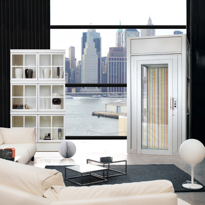 L'eleganza di DomusLift è assicurata dalla struttura in alluminio anodizzato e dalla porta di serie in vetro panoramico, ottenendo così grande luminosità e visibilità.