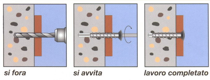 MMS si applica in tre semplici mosse: si fora, si pulisce il foro, si avvita.