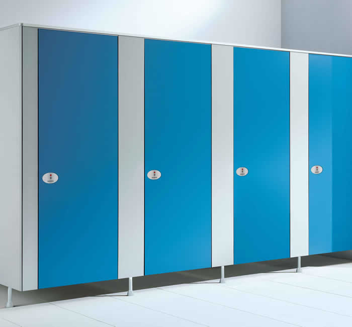 Pareti divisorie per box wc / Doccia / Cabine a rotazione in hpl e vetro temprato: il “Sistema Soema”