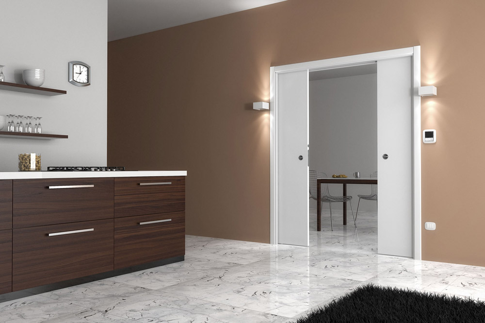 La porta scorrevole viene accolta, in fase di apertura, all’interno di un controtelaio laterale, in modo da ottimizzare gli spazi. Massima facilità di installazione e disponibilità in diverse dimensioni.